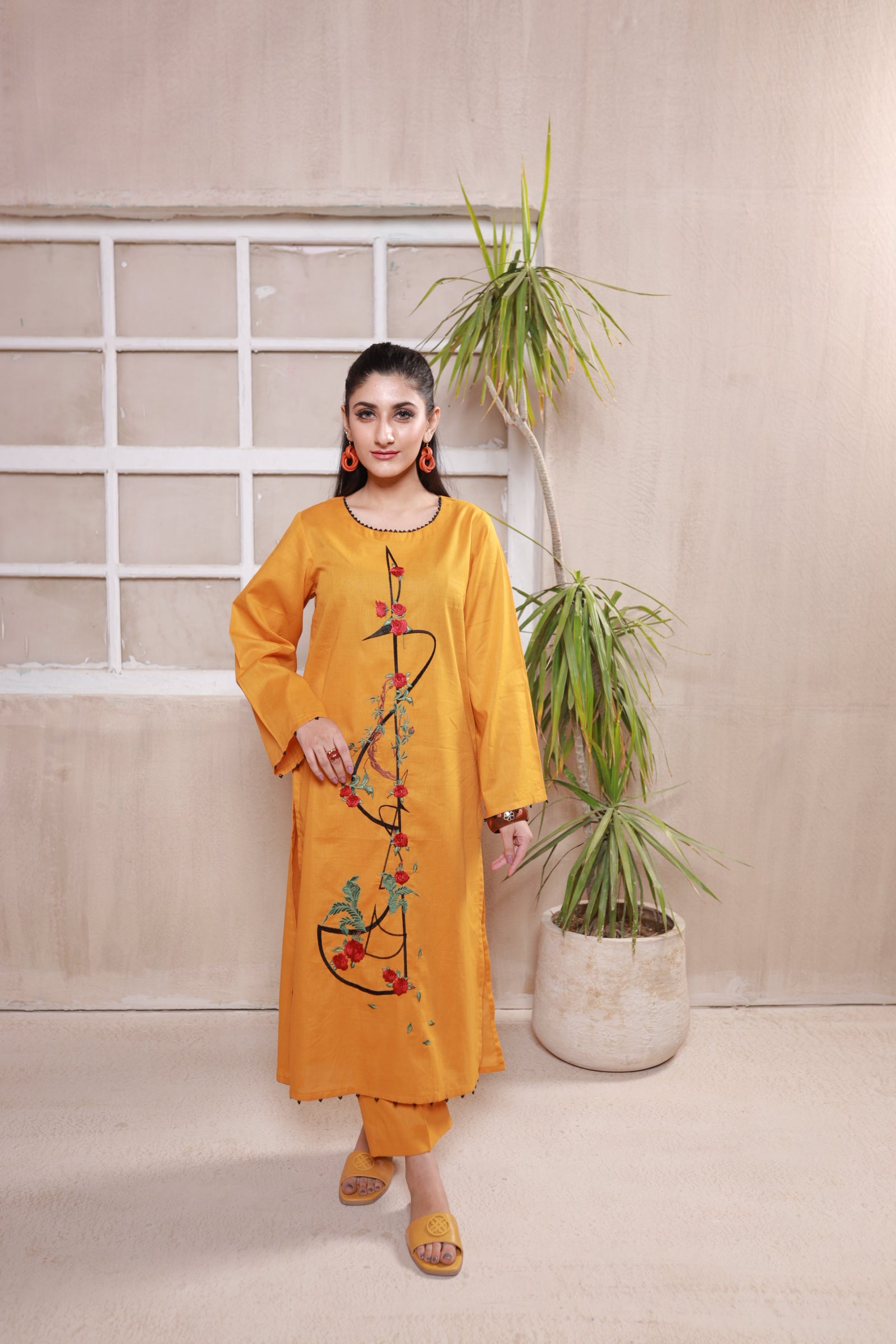 Hoist your style for the upcoming soiree, in this awe-inspiring chrome ensemble. Embroidery on the front with details on the neckline of pearls. Complete the look with matching pants.